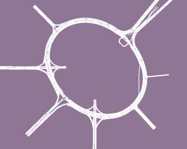 transit vehicles where the bus-way crossed the main circulating carriageway.